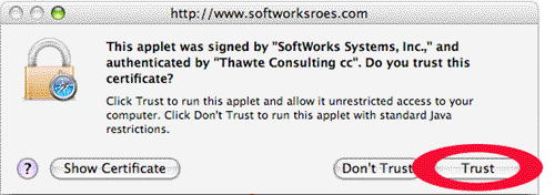 Mac OSX Security Warnings:- You will be asked authorize the operation of our "Photo Card Center" applet. When you see the following warning, please click "Trust".