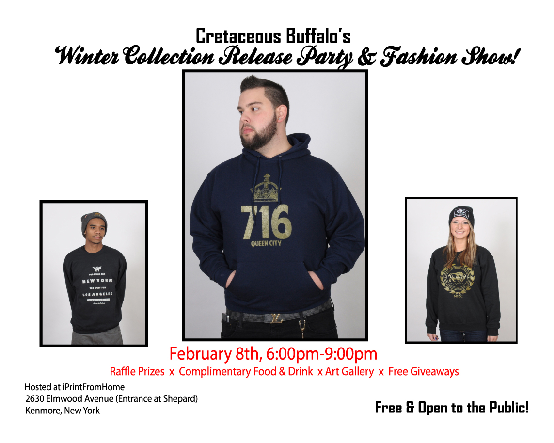 Join us for a night of art, apparel and fun as we formally introduce Cretaceous Buffalo's newest collection of winter threads! We will also introduce an art gallery featuring the work of local artist, screen printer and Cretaceous owner, Zach Patton. This is an event for all ages, so if you're in to Buffalo, art & apparel, grab your friends and family and come on over!