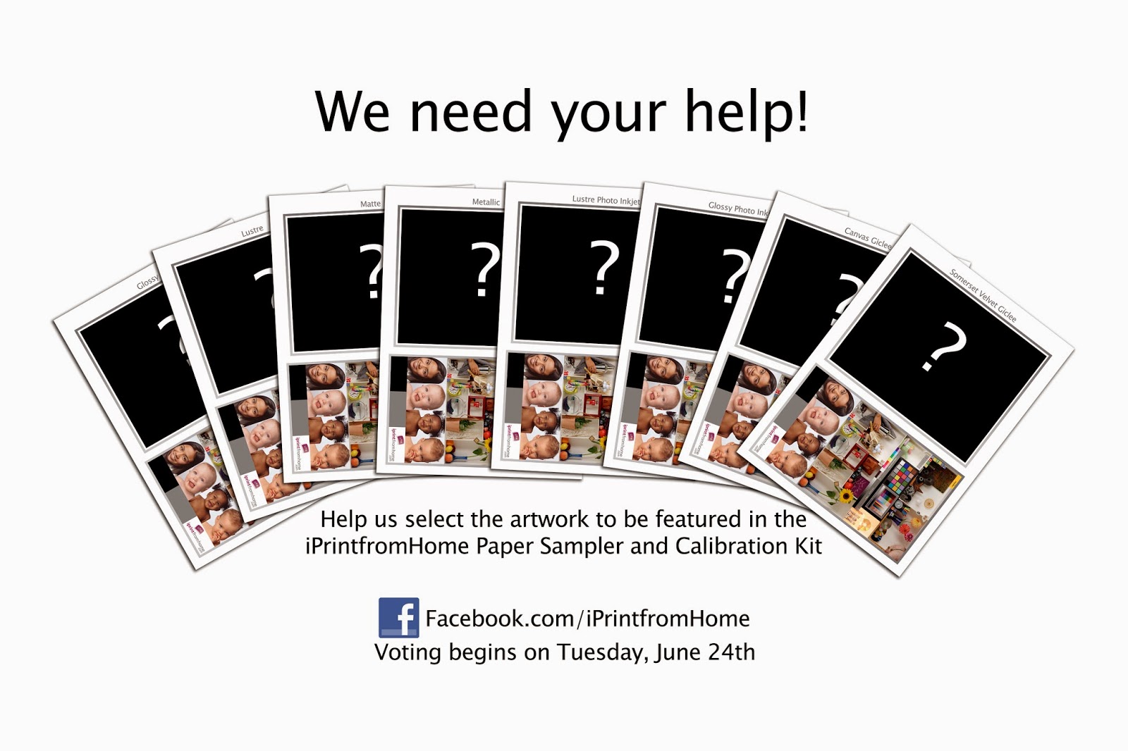 A.Go to Facebook.com/iPrintfromHome. Please "Like" our page. Then review the images in the “2014 iPrintfromHome Paper Sampler and Calibration Kit Images” album and click on “Like” to vote for individual images.