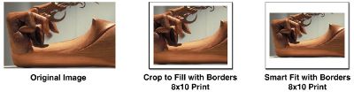If you choose to add borders to images printed with "Smart Fit" cropping preferences, your entire digital image will be printed within the selected paper size with no cropping whatsoever. A white border will surround the digital image.